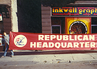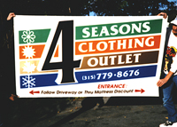 Our banners are made of reinforced nylon with banner tape or sewn-in hems. Brass grommets and nylon webbing are options for displaying your banner. We also make many short term use banners using heavy weight paper and reinforced edges and grommets.