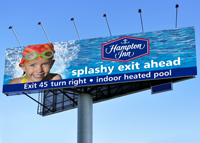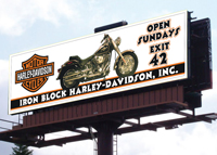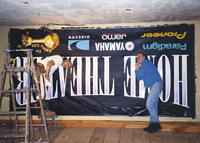 ALthough you may not realize it, one form of banner is replacing the old painted bulletin boards on the highway. These digital prints, (or wraps), caneasily be 12 by 48 feet in size. Output on grand format printers, this method significantly reduces production costs.