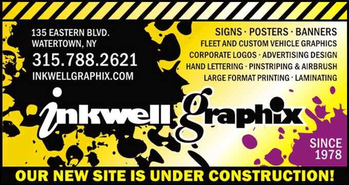 Inkwell Graphix is located at 135 Eastern Boulevard in Watertown, NY 13601. Our phone number 315-788-2621. We offer commercial art and design, signs and banners, vehicle and boat graphics and large format digital printing services. We are open Mon-Fri from 9 am to 5 pm, and on weekends by appointment.