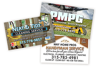 Business cards- of course! But how about flyers, post cards or brochures and large format posters as well?